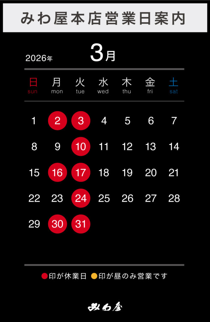 みわ屋3月の営業のお知らせ